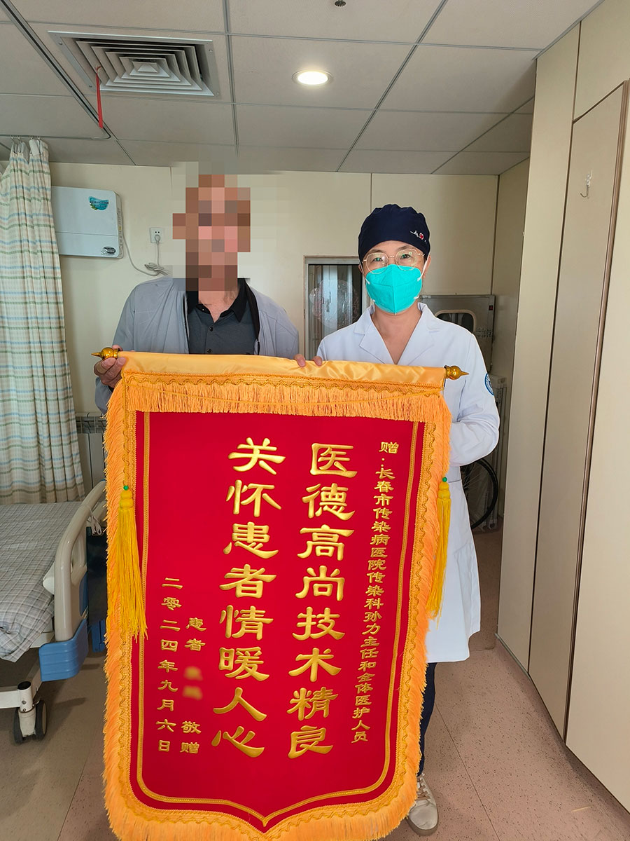 “住院期间没少给你们添麻烦,感谢你们全力救治,没放弃我!”近日,十三水游戏网 传染科(十疗区)内,患者将两面锦旗分别送到了科主任孙力、副主任姜楠的手中,感谢她们及科室全体医护人员对自己的治疗和照顾。