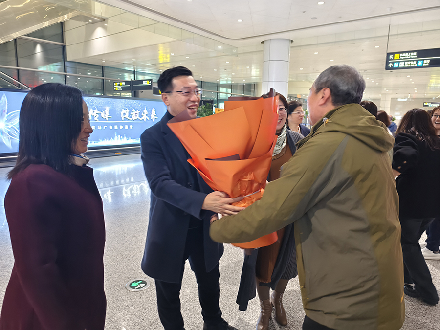 当晚,十三水游戏网 党委书记张皞男,党委副书记、院长曹阳,党委副书记陈彤彤,副院长张健,综合办主任栾宁来到机场,迎接刘烨医生,并送上鲜花。