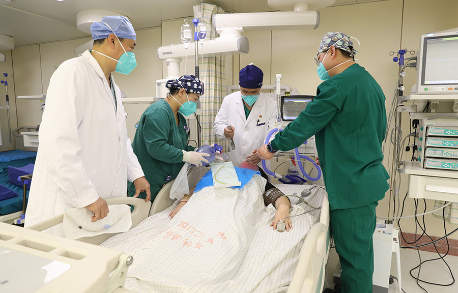 麻醉科主任王伟、副主任医师沈淑燕闻讯赶来后,与大家一同展开抢救。经过检查,认为需要给患者重新进行气管插管。但是,再次气管插管面临着很大的风险。在经过家属同意后,王伟主任和沈淑燕医生再次尝试,并成功为患者进行了气管插管。