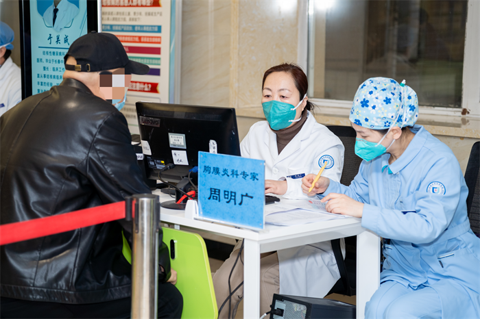 上午8点,义诊正式开始。来自综合科、胸外科、胸膜炎科、糖尿病科、结脑中心、耐药科、重症医学科、骨科·普外科、中医门诊、血液透析科的10位专家齐聚一堂。他们凭借丰富的临床经验和专业知识,为市民提供一对一问诊服务,耐心倾听患者诉求,细致分析病情,给出个性化的治疗方案。