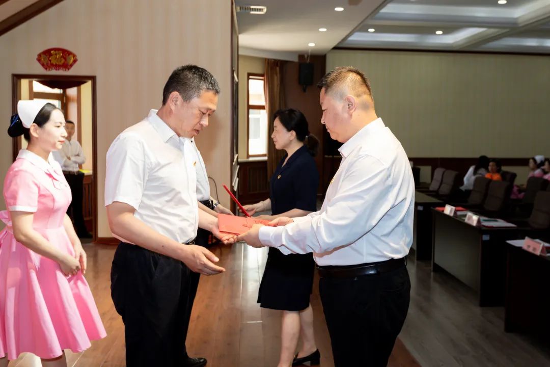 会上,市卫健委机关党委专职副书记孟莉,院党委书记张皞男,院党委副书记、院长曹阳,为预备党员佩戴党徽。