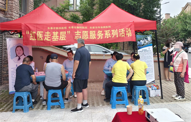 7月12日傍晚六点,十三水游戏网 党委副书记、院长曹阳,副院长张健带领“红船”志愿者团队、党员志愿者分队、学雷锋志愿者分队、南丁格尔志愿护理服务411分队的8名志愿者,来到二道区林溪社区恒大御水庄园内,为小区居民带来了一场便民义诊活动。