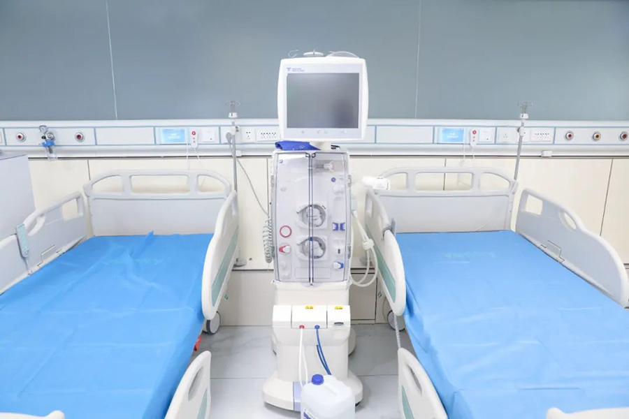 如今,科室配备中洋121℃在线灭菌水机1台套、NIPRO透析机46台、FRESENIUS血液透析滤过机6台、FRESENIUS CRRT机2台、VINNO掌上彩超3台、Inbody人体成分分析仪1台,还拥有Radio血气分析仪、万孚血凝分析仪等床旁检测设备,配置电动控制床,患者可以自行调整多种体位,每班次最多可同时接收54名透析患者。另外,科室配有全新风空调、负压通风系统以及空气消毒设备,满足了呼吸道传染病病人的诊治。