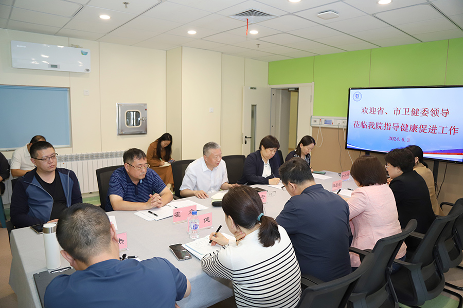 6月3日下午,省卫健委宣传处处长张福安,省健康教育中心副主任霍焱,市卫健委副主任吴静,市卫健委宣传处处长金小鸥、宣传处四级调研员何勇健来到十三水游戏网 ,就健康促进医院建设工作开展情况进行调研指导。