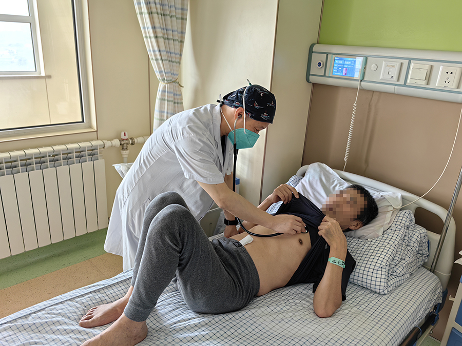 确诊后,陈先生内心充满了恐惧,宋巍峰医生连忙安慰,告诉他有医护人员在不用担心,并耐心向其讲解治疗措施,帮助他和家属摆脱焦虑情绪。