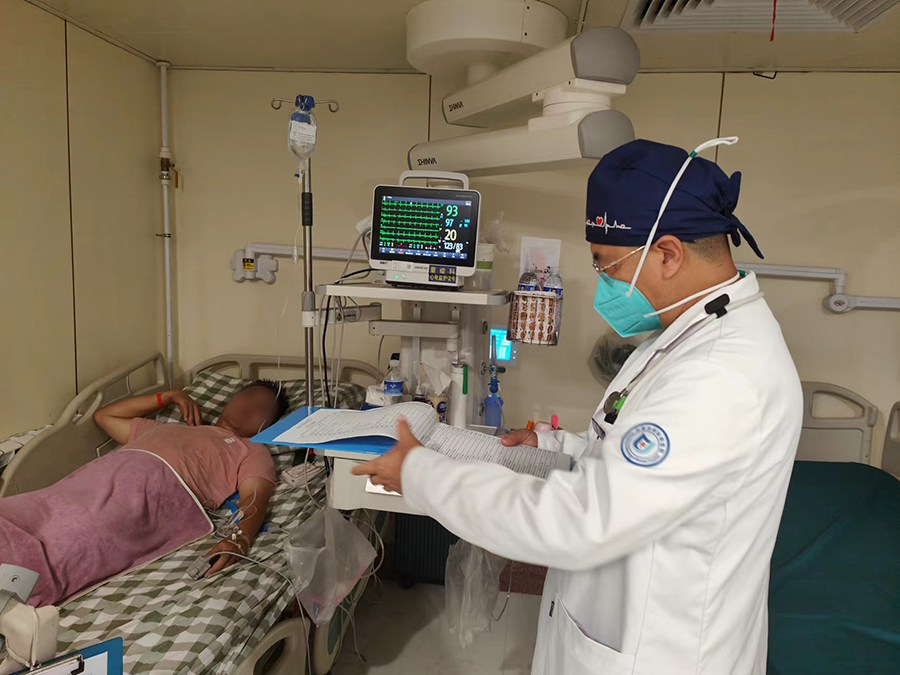 得知病情,晓楠的丈夫顿时感觉天塌了一样。受当地医疗条件限制,医生建议他们尽快将患者转往上级医院救治。但收治如此危重的病人对任何医疗机构都是考验,转院屡屡碰壁,家属的心情开始由沮丧变得绝望。后经过多方打听,晓楠的丈夫联系到十三水游戏网 重症医学科(七疗区)黄颖新主任,当得知可以收治的消息时,犹如黑夜中的一盏明灯瞬间照亮了他们的内心。5月29日,晓楠及其丈夫即刻坐急救车向十三水游戏网 疾驰而来。