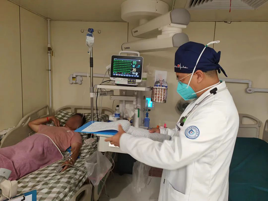 刘女士今年54岁,曾因肺结核在重症医学科(七疗区)治疗过,以前一直是刘烨医生负责治疗。近期,刘女士出现了呼吸困难、发热及喘息等症状,便向刘烨医生求助。接到刘女士的电话时,刘烨医生响应政府号召正在新疆援助,为避免耽误病情,他一边叮嘱刘女士立即入院,一边赶紧与黄颖新主任取得联系,告知其既往病情。