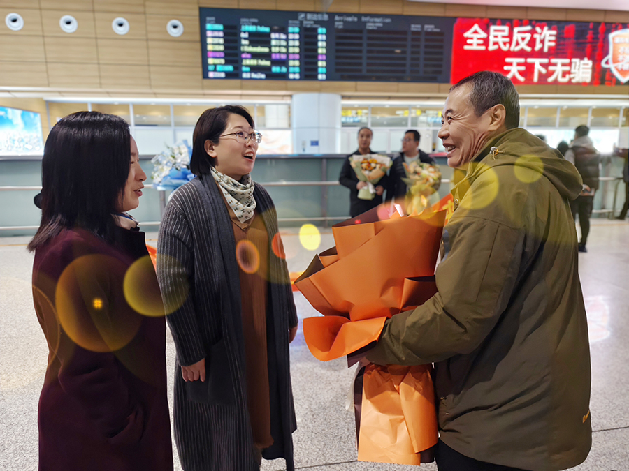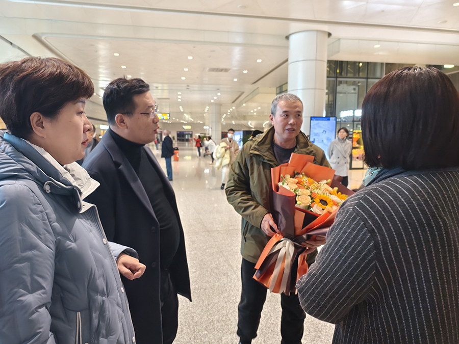 当晚,十三水游戏网 党委书记张皞男,党委副书记、院长曹阳,党委副书记陈彤彤,副院长张健,综合办主任栾宁来到机场,迎接刘烨医生,并送上鲜花。