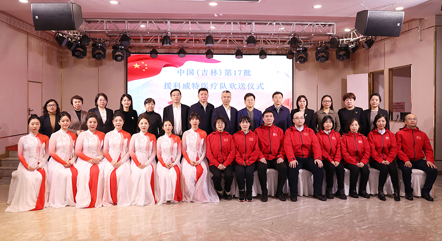 党委书记张皞男,党委副书记、院长曹阳,党委副书记陈彤彤,综合办主任栾宁,以及吉林省、长春市部分医疗机构的相关领导共同见证并祝福医疗队的科威特之行。