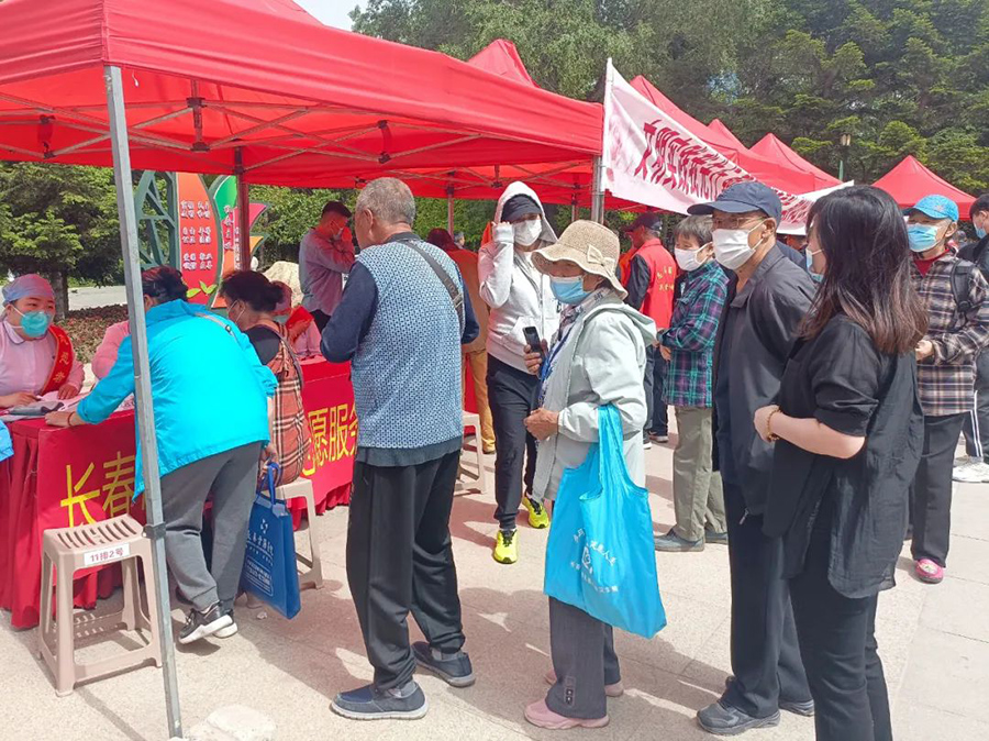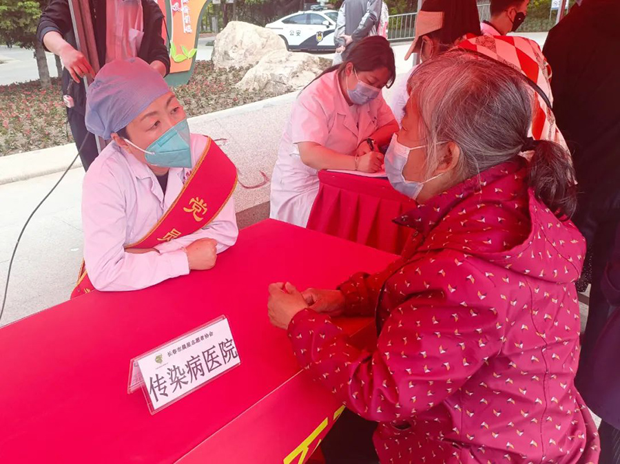 活动中,前来咨询问诊的群众络绎不绝,来自医院三疗区的医生周明广、护士李欣昕,透析室护士贾越雯以及党办干事周禹含,为大家测量血压、血糖和血氧。