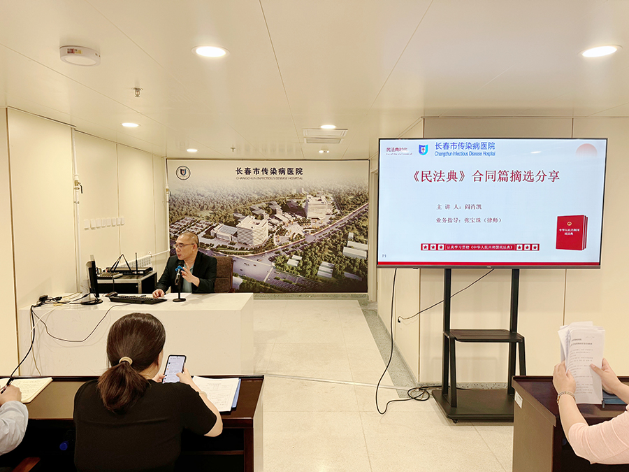 财务总监阎肖凯就《民法典》合同篇进行专题培训,核心目标为增强全院干部职工的法治思维和运用法治方式的能力,提高医院合同管理工作的规范性和有效性,有效防范合同风险,推动医院高质量发展。
